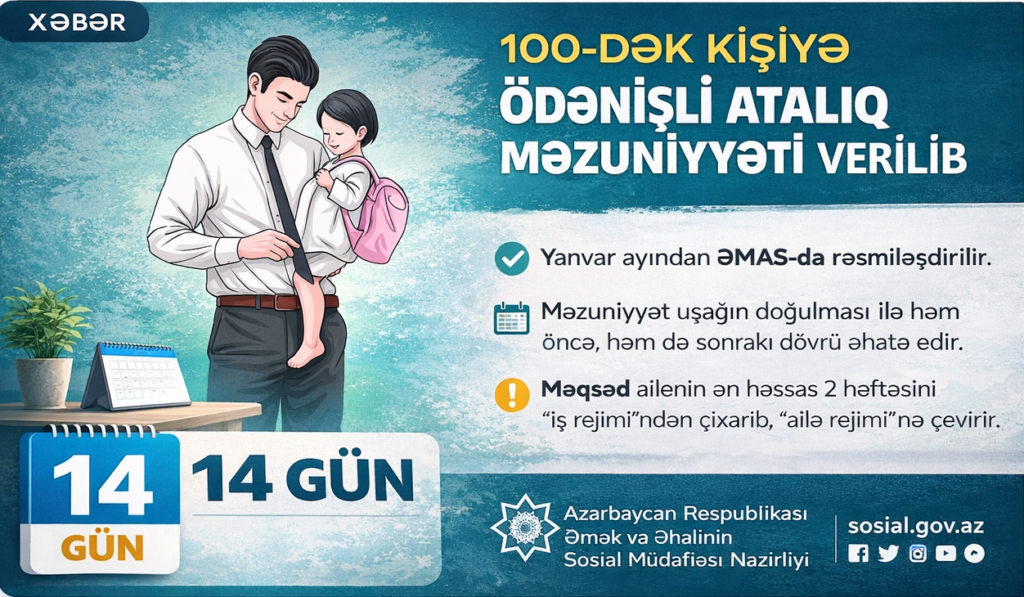 📌 14 gün ödənişli atalıq məzuniyyəti
